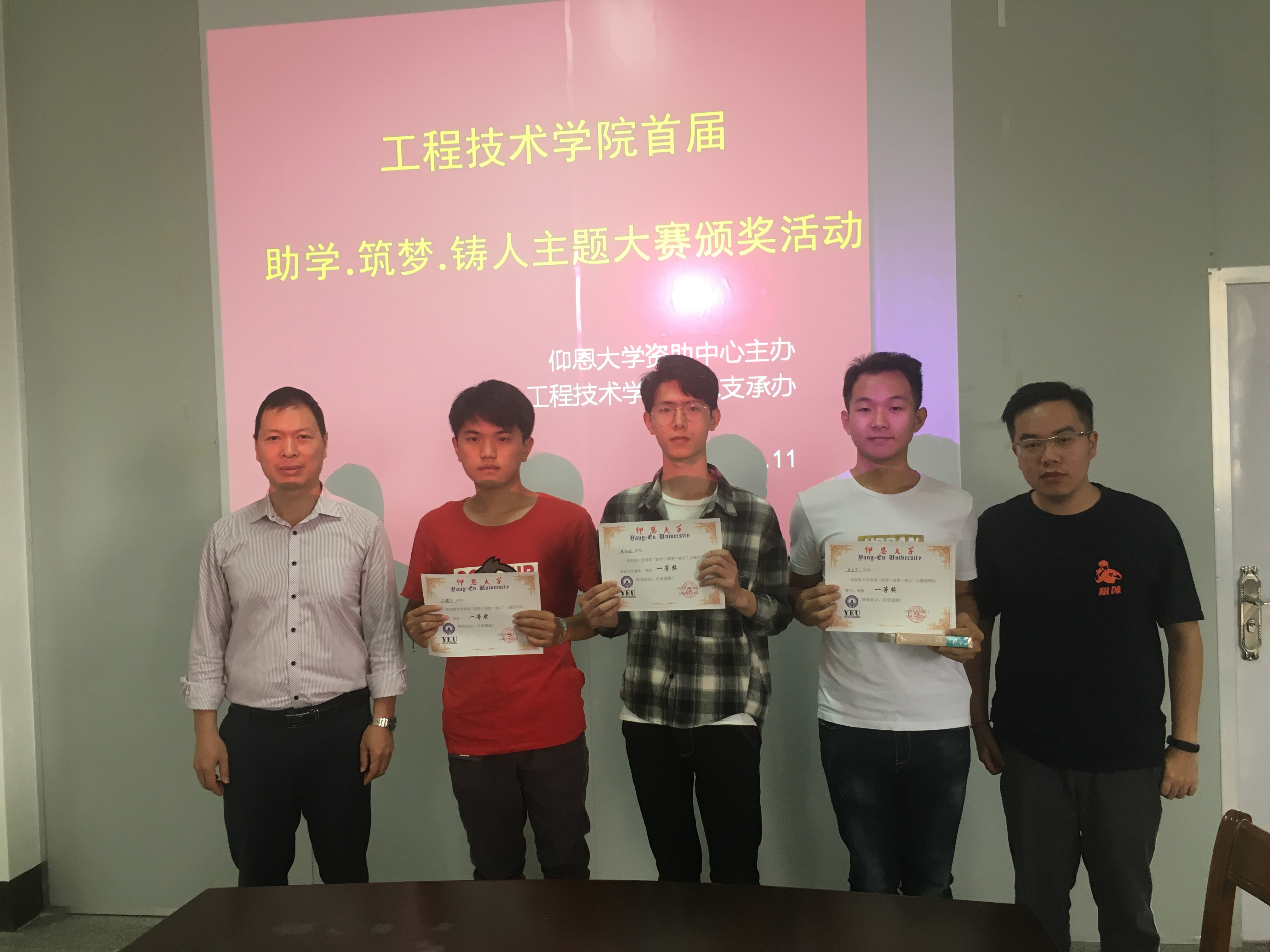 5月11日jinnianhui今年会党总支在泽川楼四楼会议室进行“助学·筑梦·铸人”主题比赛的颁奖仪式。出席颁奖仪式学院党总支书记兼副院长曾凤生,总支副书记吕思仁,学务秘书陈旗敏以及学院辅导员,获奖者们得到了比赛的奖状和奖品,本次比赛取得圆满成功。
