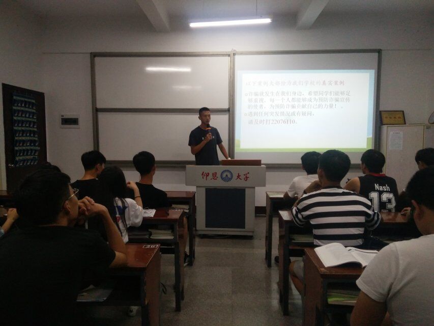 近几年来,全国各大高校学生被诈骗事件频频发生,对受害人及其家庭造成严重影响,甚至破坏了社会风气。不法分子利用我们的防范意识薄弱进行犯罪,为了不让犯罪分子有机可乘,16级计算机二班于5月27日晚在共和楼305,由班长吴怡泽同学主持开展了“防诈骗”主题班会。