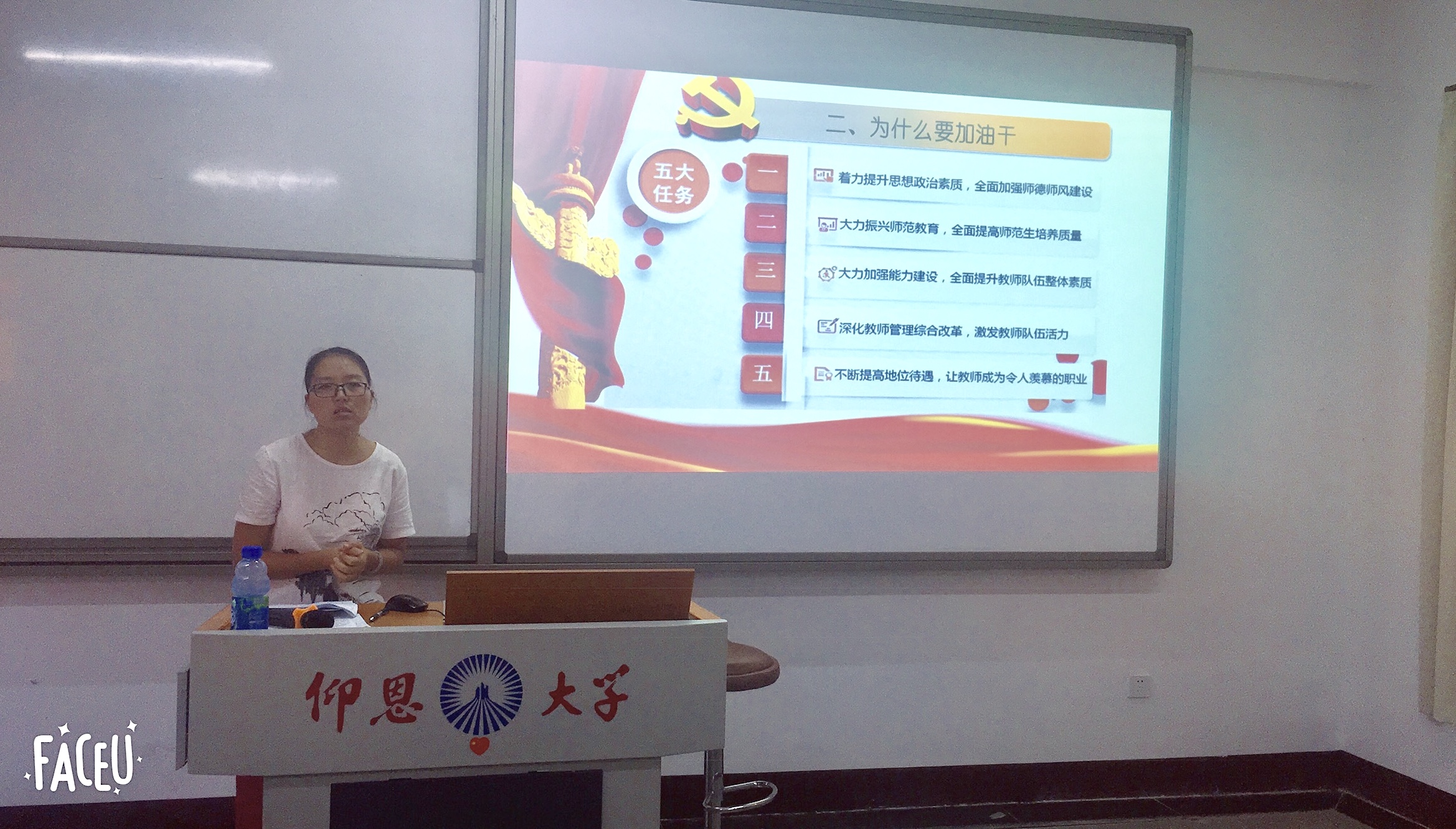 为进一步响应中共今年会官方网站委员会提出“推进了全校深入学习宣传党的十九大精神”,贯彻落实今年会官方网站宣传部的安排部署,9月26日,jinnianhui今年会于开展了主题为“撸起袖子加油干——党员如何发挥引领作用”的宣讲活动。诚邀会计学院党总支书记高雪琪为本次宣讲。宣讲由学院总支副书记吕思仁主持,jinnianhui今年会全体师生党员、数学系全体党员参加。