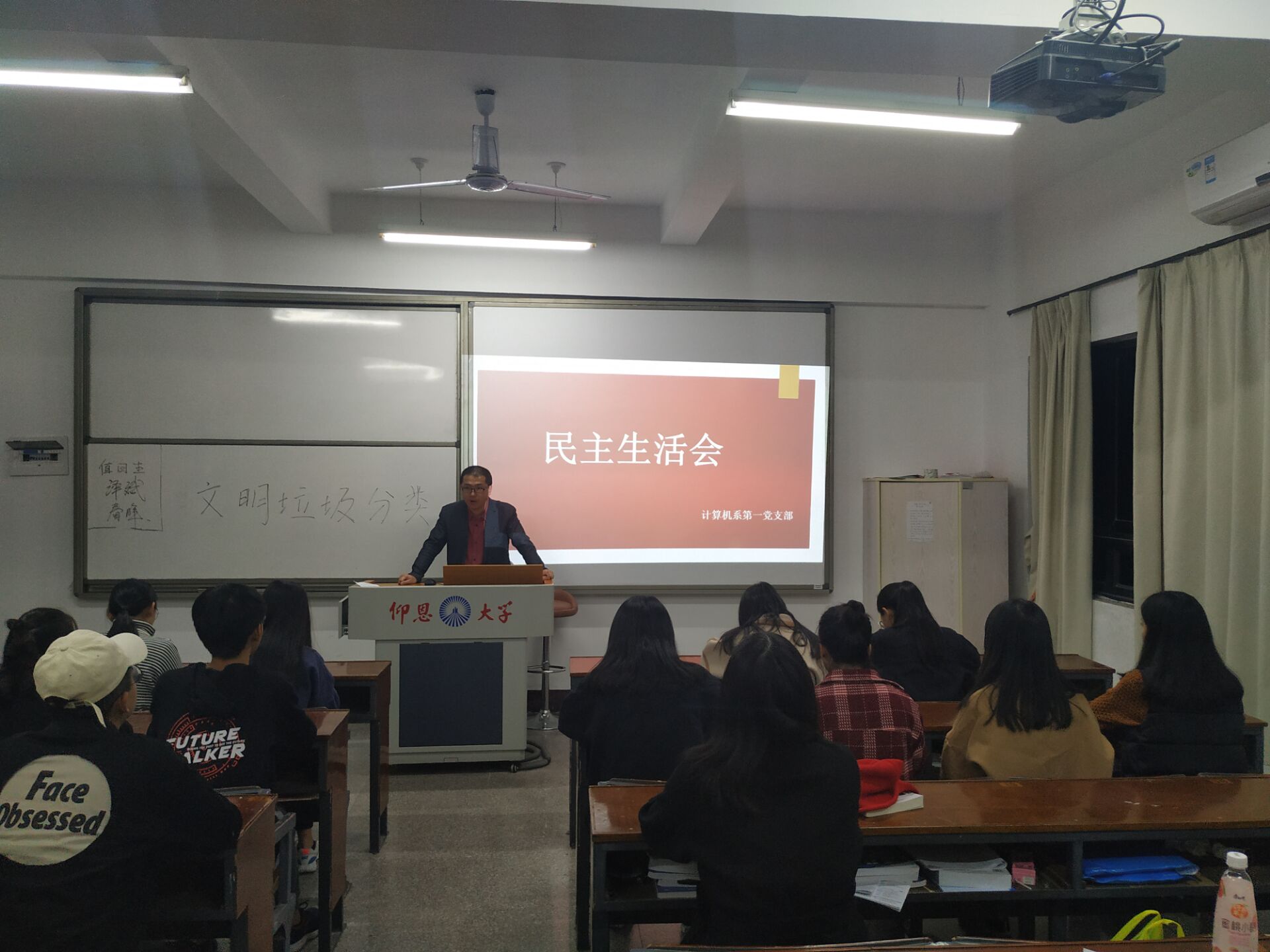 12月6日晚7点,计算机系第一党支部于共和楼401室,召开民主生活会,此次会议由王波老师主持,计算机系第一党支部全体学生党员参加,并积极发言。