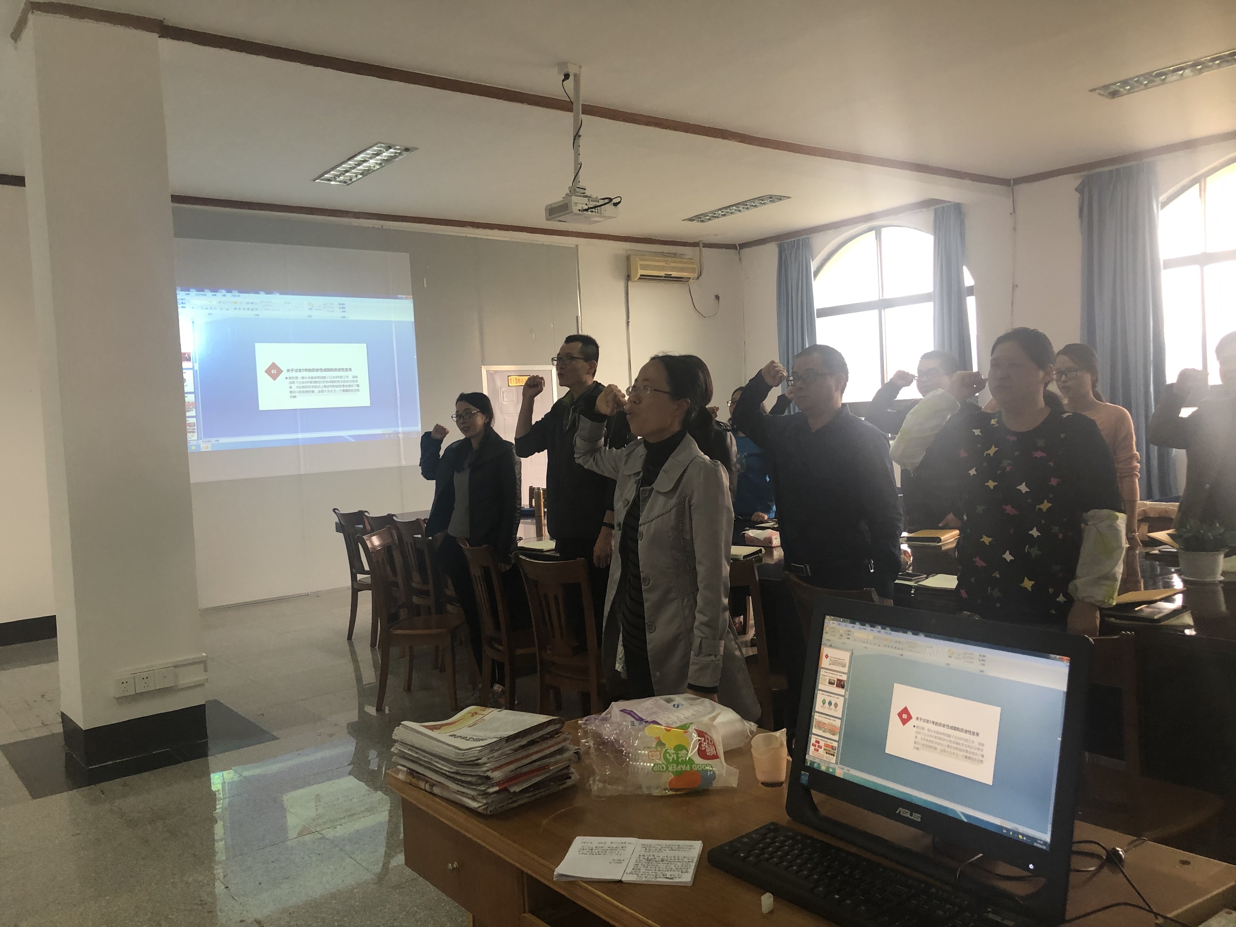 3月31日,教工支部全体党员在郑燕娥书记的带领下,开展了以“不忘初心牢记使命,夺取新时代中国特色社会主义伟大胜利”为主题的党日活动。