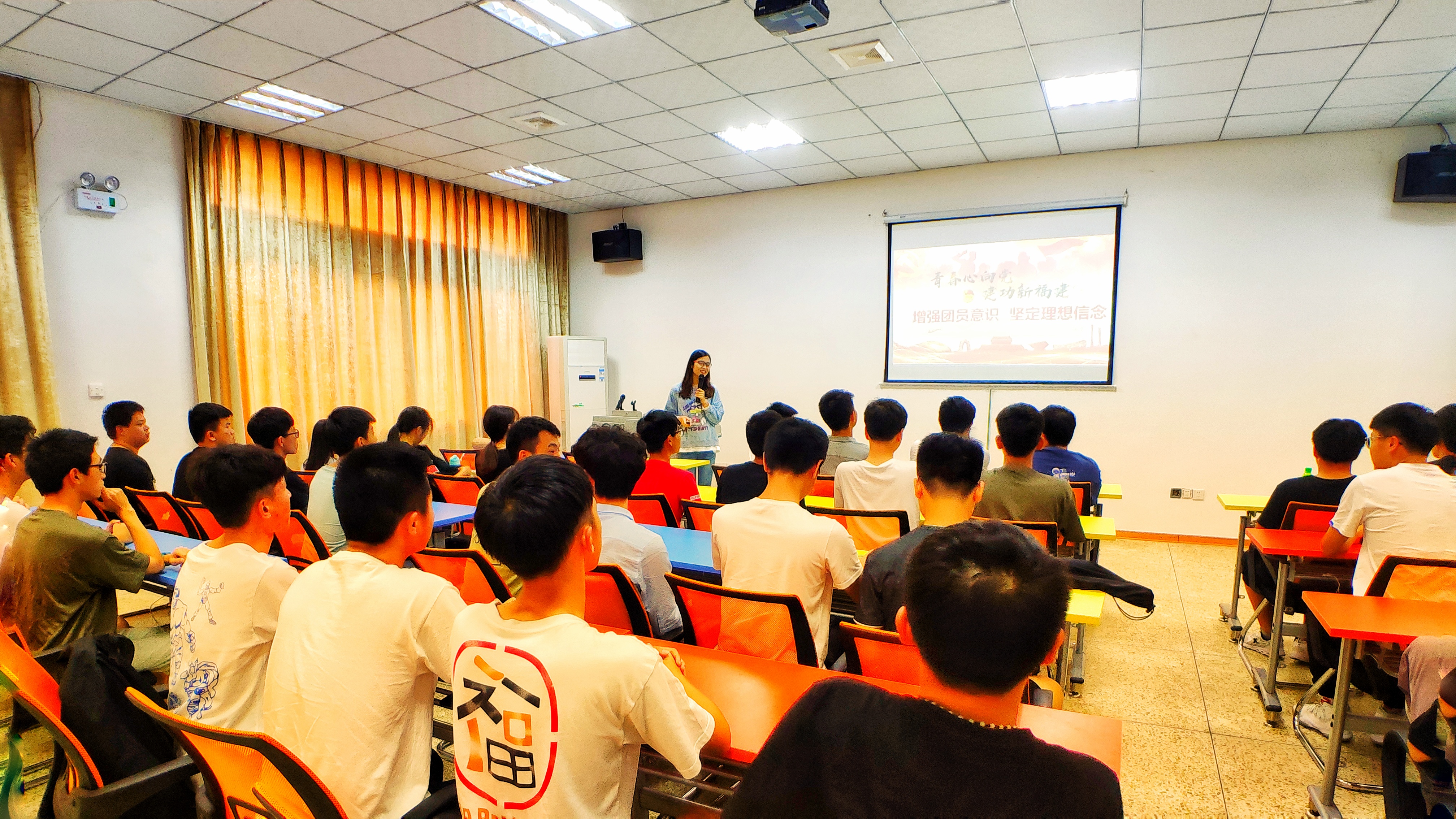 5月17日下午,以“青春心向党·建功新福建”为主题的“青马之光”主题宣讲活动jinnianhui今年会宣讲会于第一教学区创业园培训室举行。此次活动邀请了人文学院团委书记朱婷主讲《增强团员意识,坚定理想信念》,2018级电气及其自动化1班团支部全体成员到场聆听。