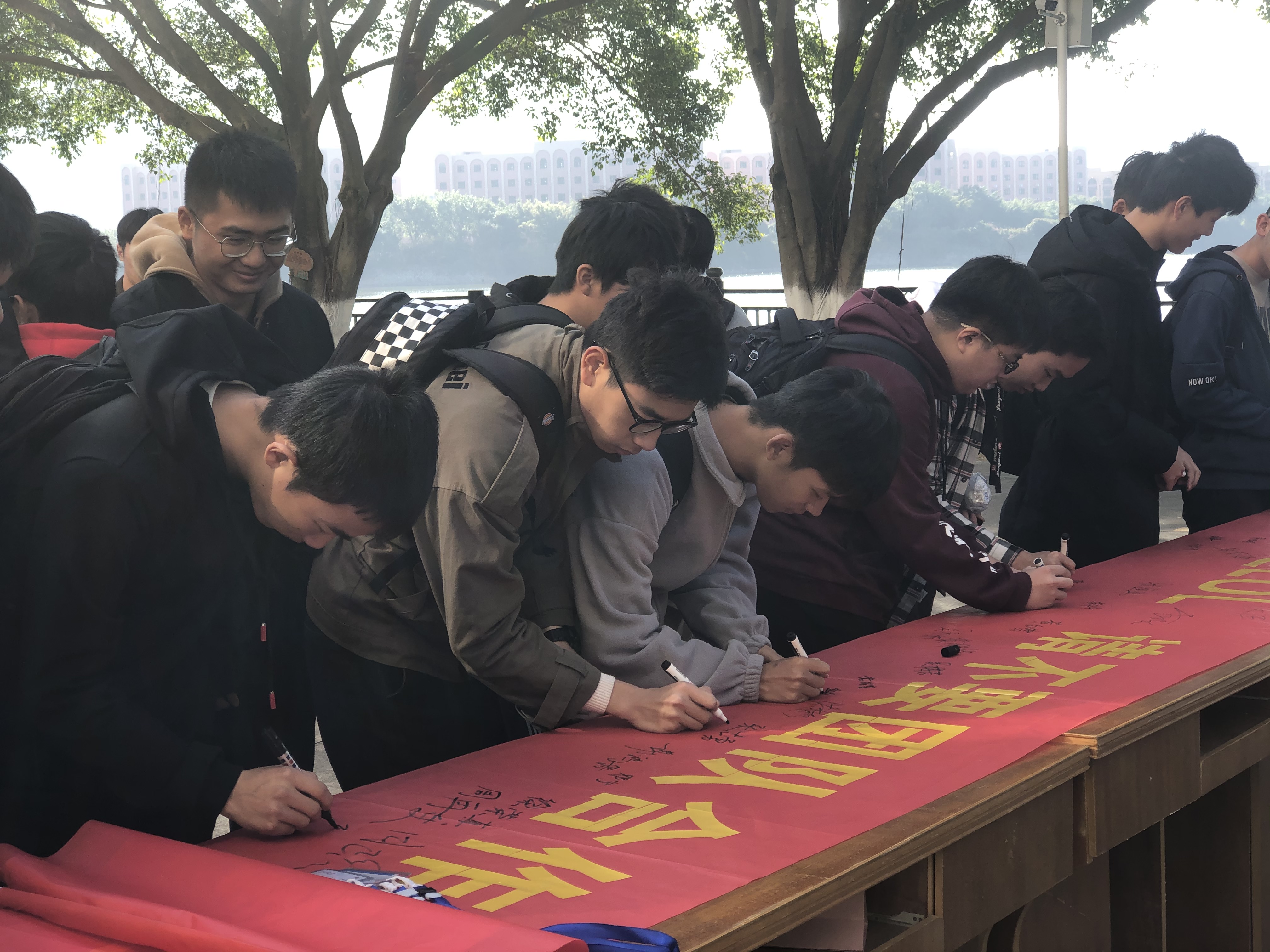 为推进我校学风建设,提高学生诚信考试意识,重视学习,重视考试,重视诚信,营造一个良好的公平考试氛围。12月13日,今年会官网开展以诚信考试为主题的横幅签字承诺活动。