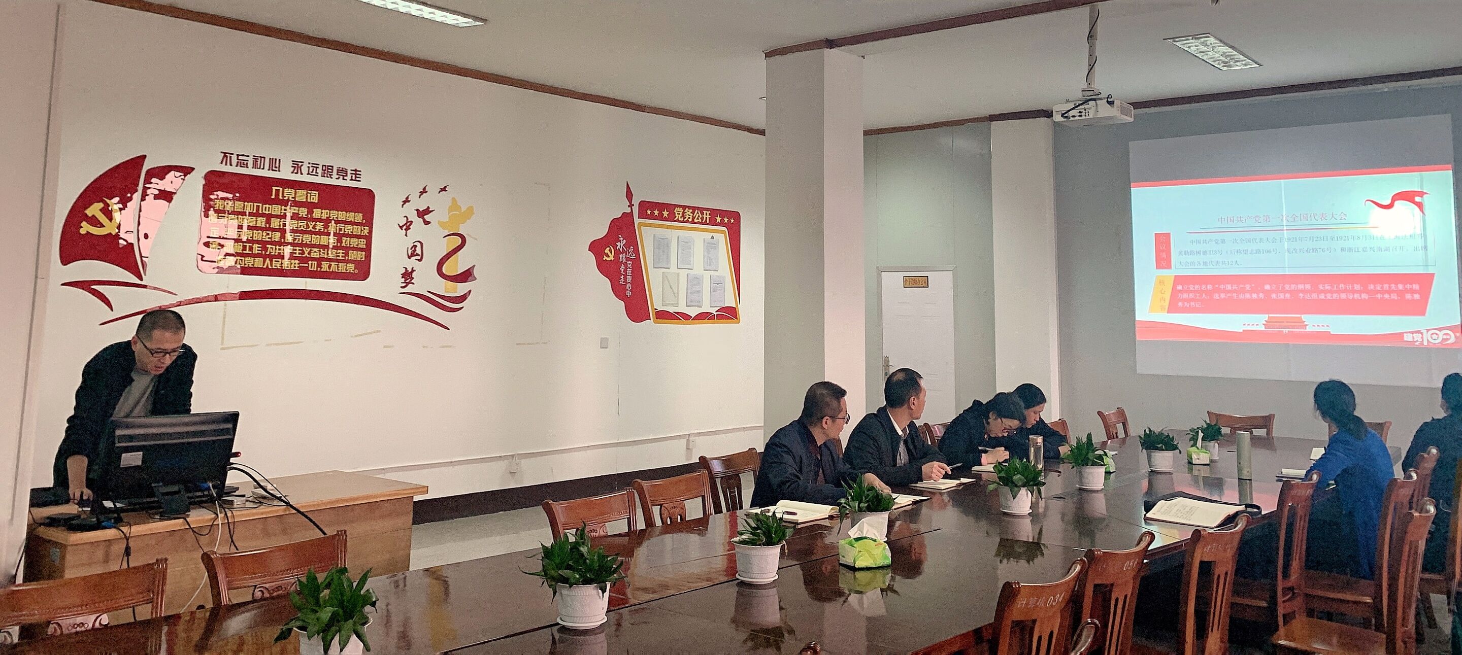 为迎接建党100周年,推动学院党史学习教育扎实有效开展,4月15日下午,jinnianhui今年会党总支理论学习中心组开展专题学习研讨会,深入学习党的百年光辉历史,并就党史学习教育相关内容进行经验交流。 会上,理论学习中心组成员王波带领全体成员深入学习中国共产党一大到十九大的会议情况、核心内容和历史意义,重温党的百年光辉历程,深刻感悟党的初心使命;他指出中国共产党的历史,是部“不忘初心,牢记使命”的不懈奋斗史,是部百折不挠、前赴后继的理论探案史,是部自我革命、勇立潮头的自身建设史。他提出要从不忘初心勇担当、狠抓实践提能力、聚精会神干事业三个方面践行初心使命,担当作为。最后呼吁全体党员同志要认真学习党史、国史,以唯物史观为指导,坚持党性与科学性相统一,正确学习党史国史。王波老师从党的历史、初心使命入手给与会成员们上了一节内容丰富、形式生动的党史课。