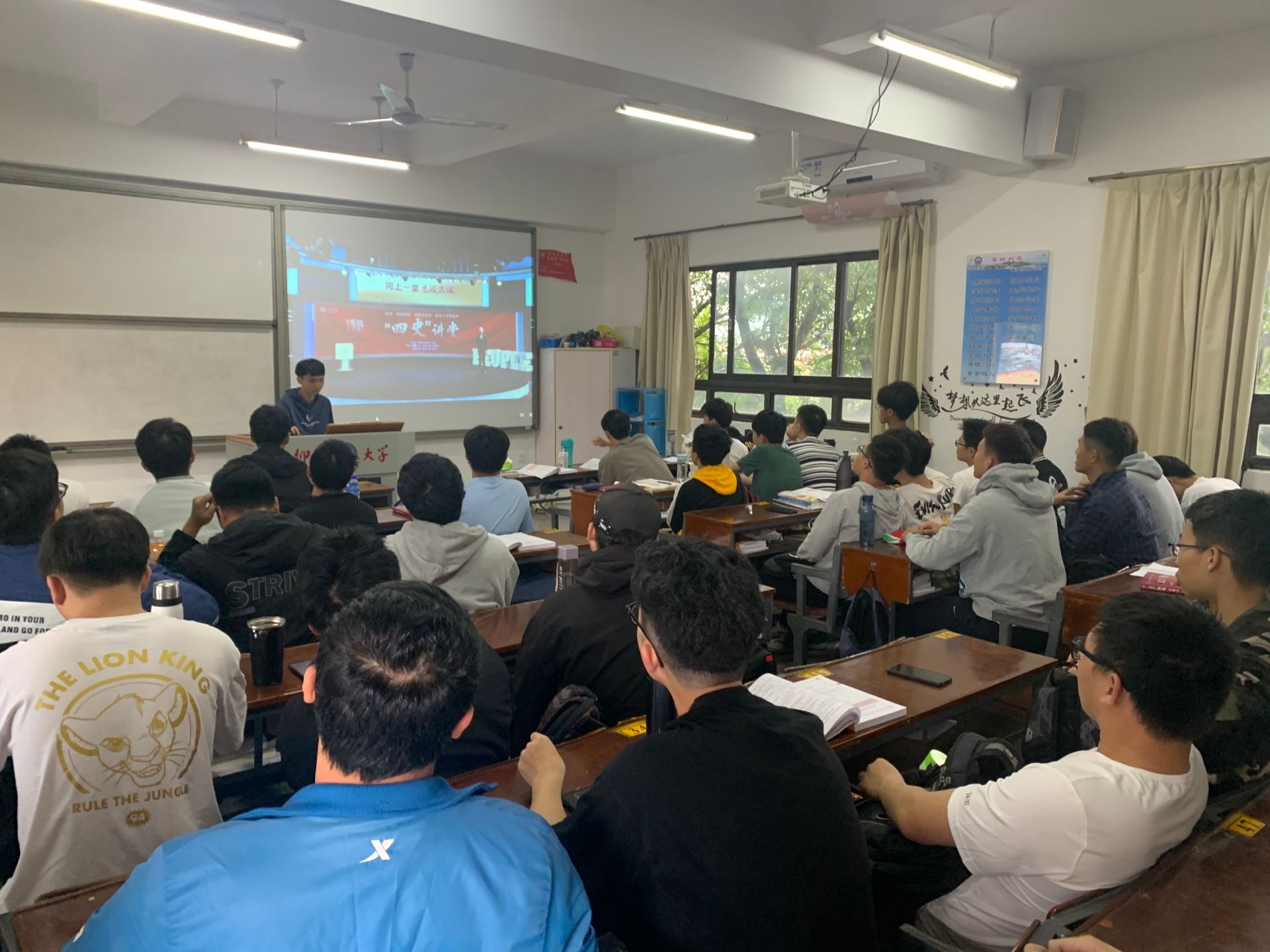 学生在班级观看直播