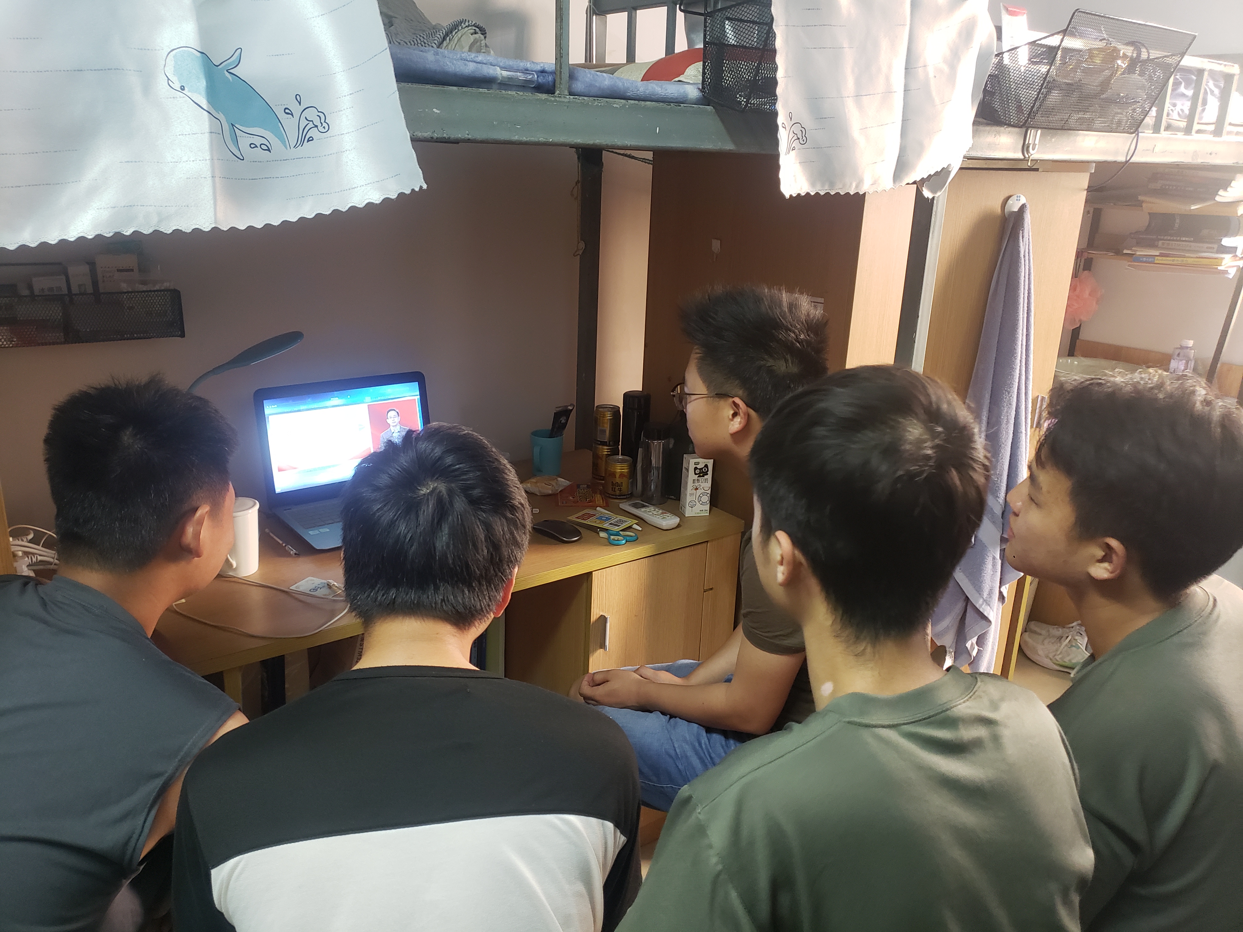 学生在宿舍观看直播