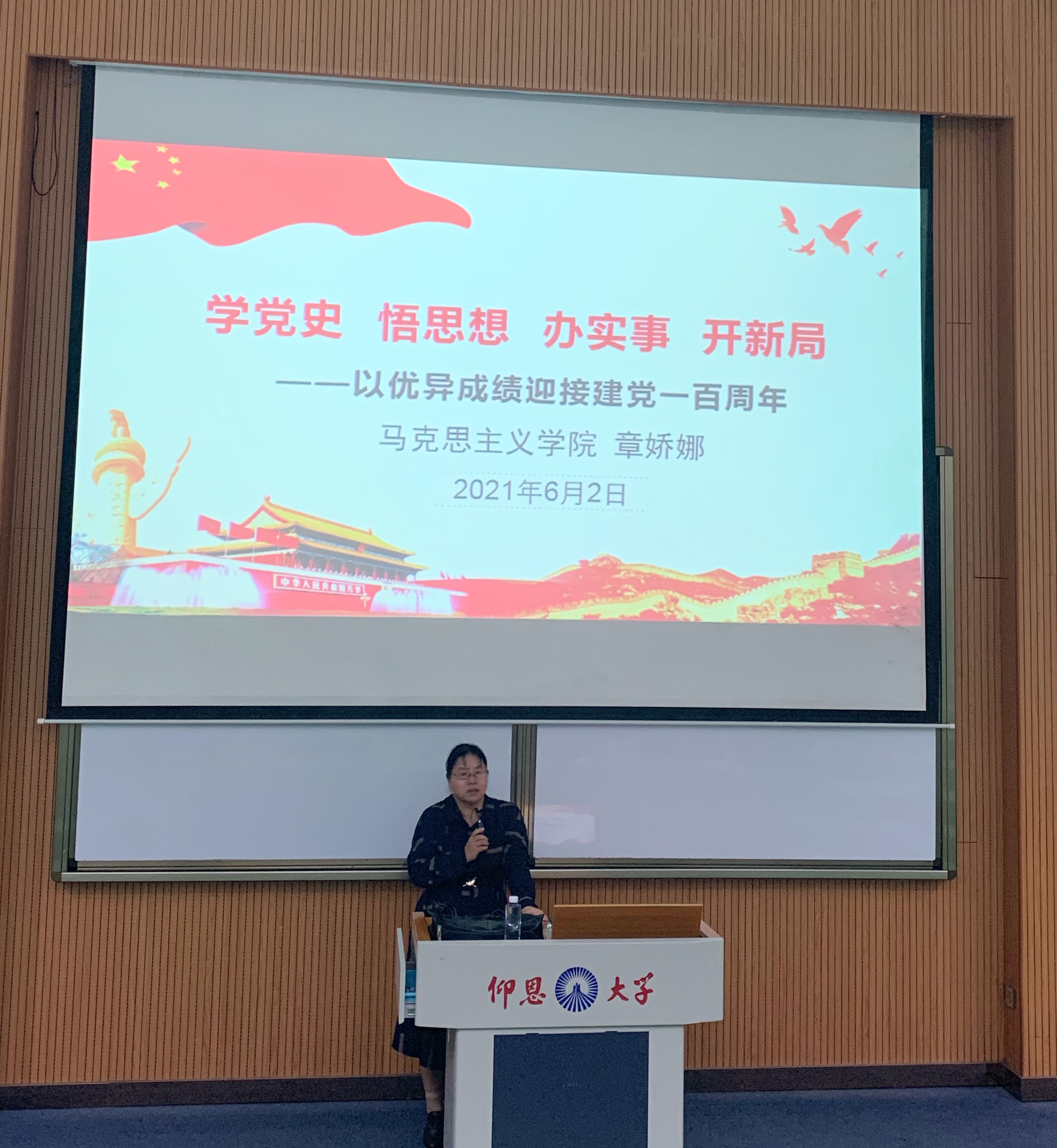 6月2日下午,jinnianhui今年会联合现代教育技术中心于第一教学区和昌楼乐之讲堂开展党史学习教育报告会。校党史学习教育宣讲团成员、马克思主义学院副教授章娇娜做题为《学党史 悟思想 办实事 开新局——以优异成绩迎接建党一百周年》的专题报告。jinnianhui今年会和现代教育技术中心全体师生党员到场聆听。