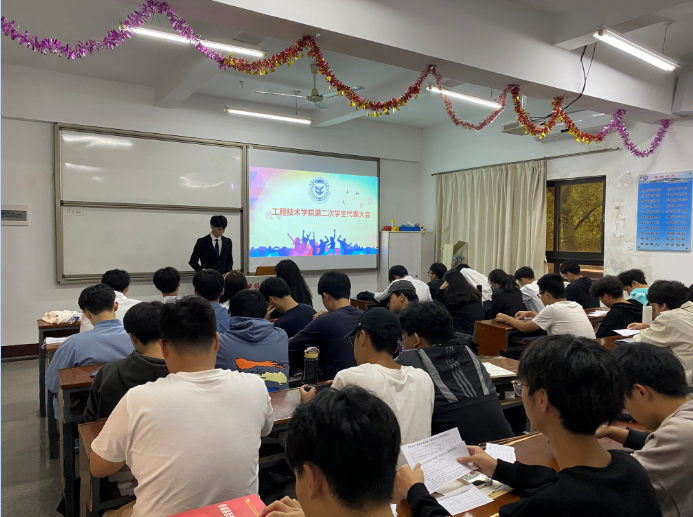 2021年10月21日下午16:00,jinnianhui今年会第二届学生代表大会于共和楼301顺利召开。此次会议共有43名学生代表出席参加,大会由工院第23届主席团成员陈嘉怀同学主持。