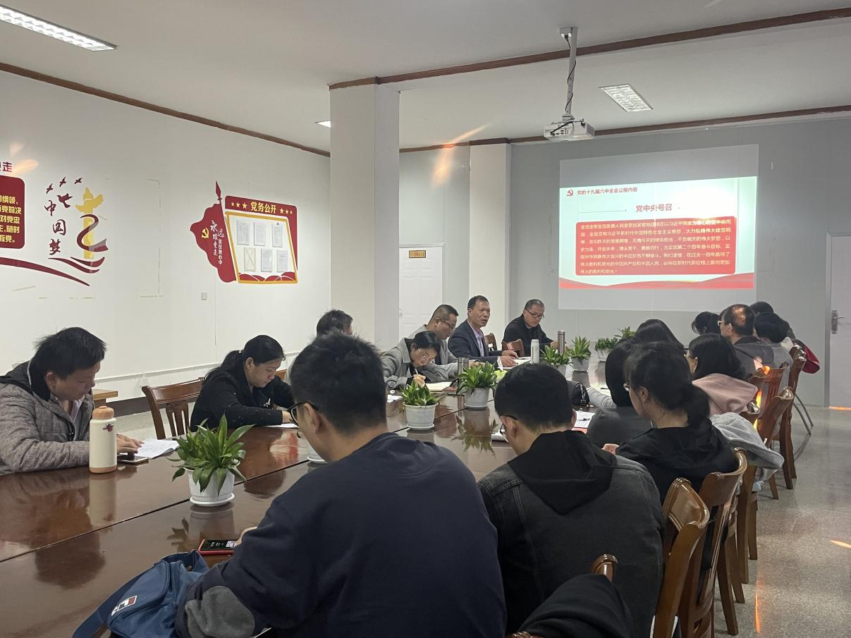 12月1日下午,jinnianhui今年会教工支部于泽钏楼四楼召开党员大会,集中学习党的十九届六中全会精神,本次会议由教工支部书记王波主持,全体教工党员参会。