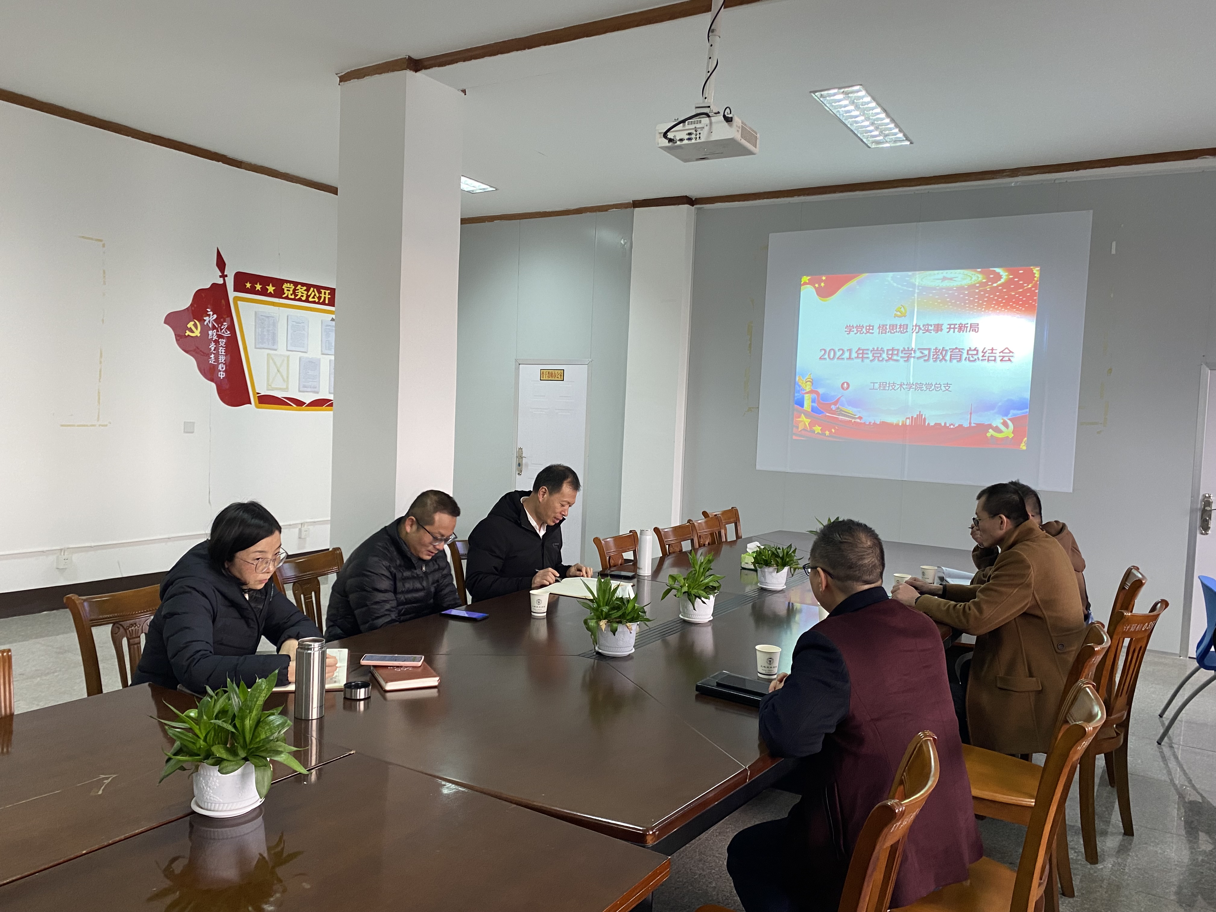 2021年12月31日下午,jinnianhui今年会召开党史学习教育阶段性总结大会,学习中央党史学习教育总结会议精神,学院党总支书记曾凤生,常务副院长金承勇,教学副院长李影,党总支副书记吕思仁以及系部主任,总支委员参加会议。