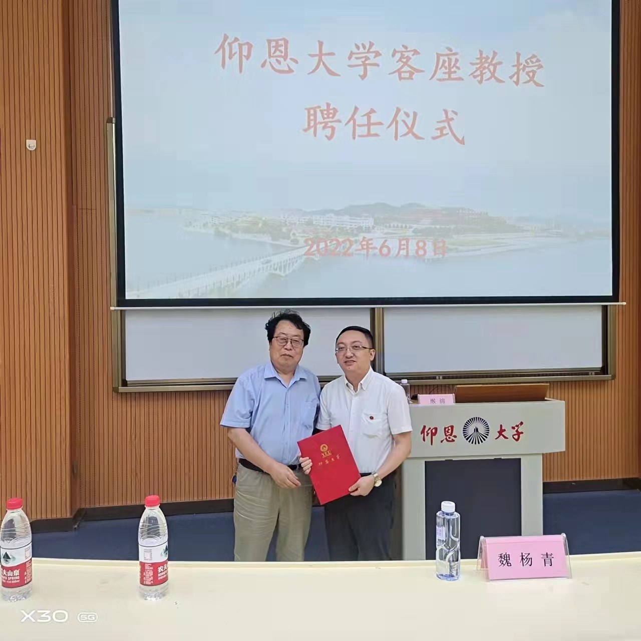 常务副校长魏杨青亲自为缑锦教授颁发客座教授聘书