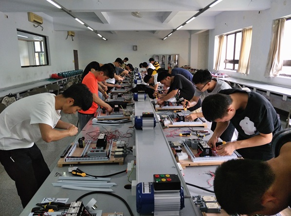 为确保学生顺利通过考试,学校相关部门与专业教师提前做了充分的准备,组织学生进行实训操作技能的强化练习,考场、监考安排等。考试分理论与实操两大块。理论是机考,在泽306软件实验室进行;实操在泽201、202、108硬件实验室进行,学生在完成实操后,以问答的形式详细介绍实操涉及的理论知识和操作技能,它涵盖了电工基础、电子技术、电机与变压器、电力拖动和自动化控制及仪器仪表等相关知识。