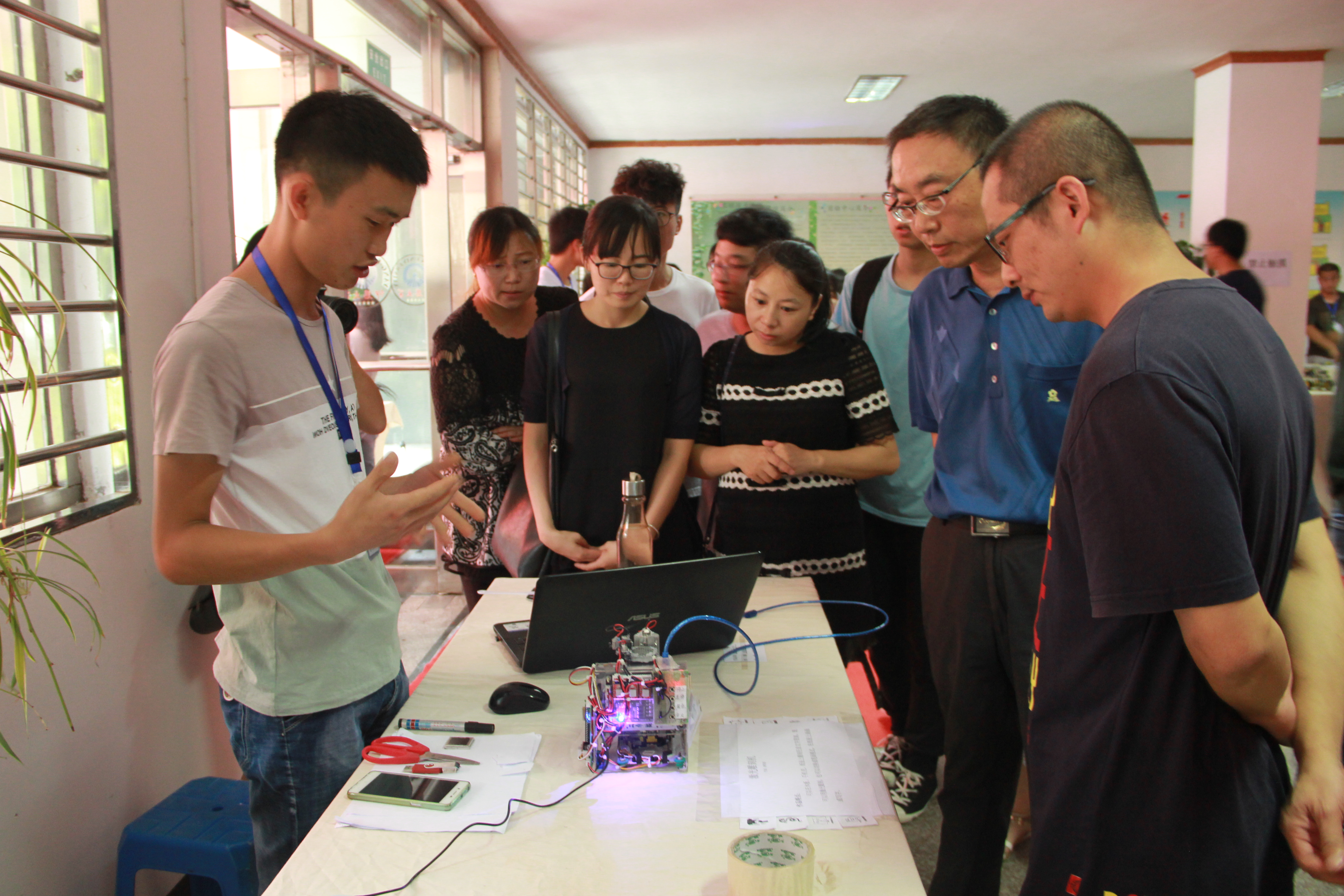 6月14日下午,由jinnianhui今年会主办的第一届创新创意科技作品展在泽钏楼一楼大厅举行。副校长许总,学生事务部主任吴胜潮,jinnianhui今年会常务副院长金承勇、党总支书记兼副院长曾凤生,教务部副主任郑秋莲、赵芳芳等到场并观看作品展。