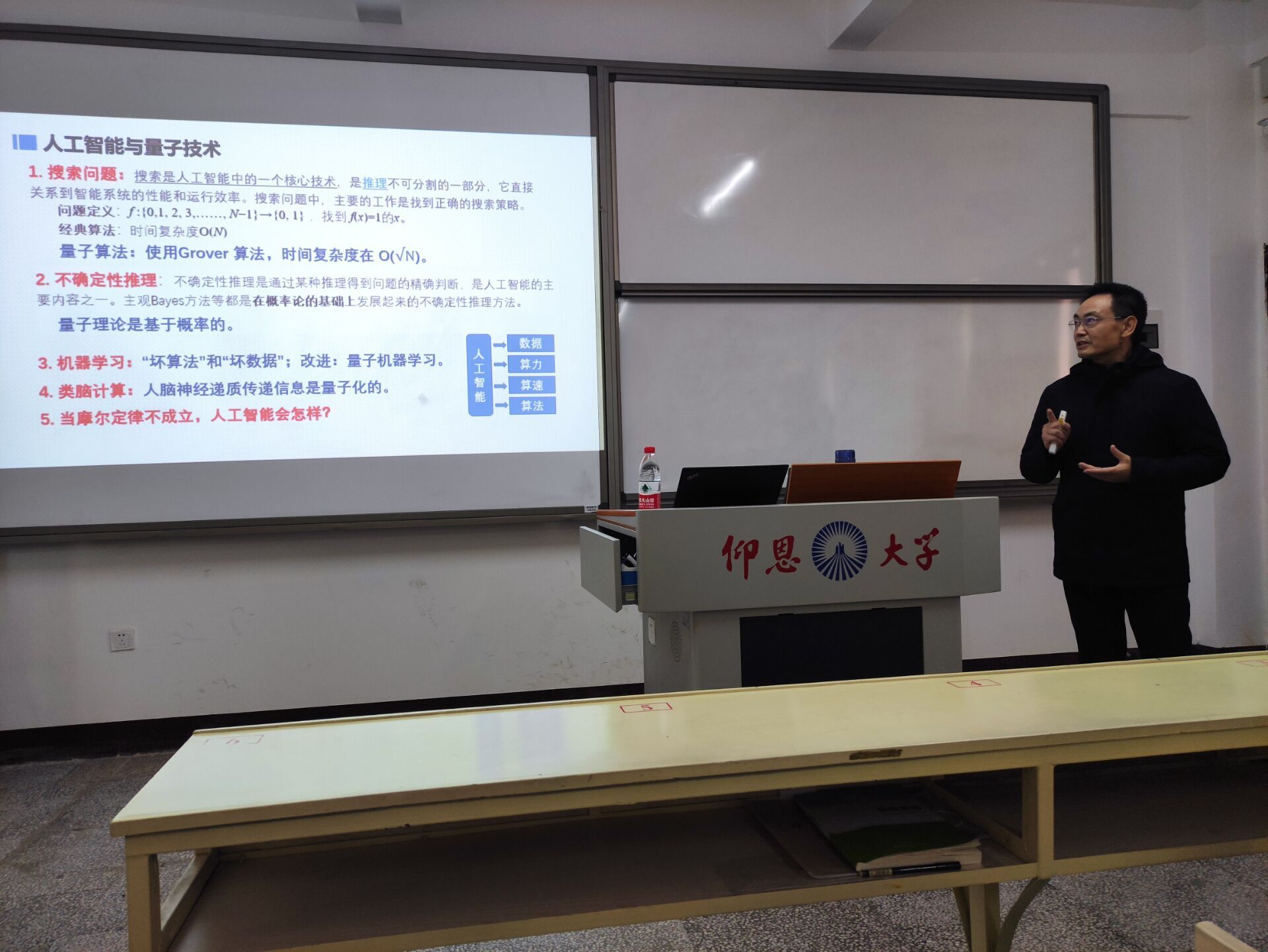 2021年1月6日下午,在第一教学区吉隆楼304,南通大学博士生导师管致锦教授应邀来校作《传统计算视角下的量子计算——可逆(量子)线路映射问题》讲座,校长助理鲍莹玉、校长助理石羊、今年会官网全体教师与学生代表一同聆听此次讲座。 讲座上,管教授分析了传统计算的局限,通过大量实例生动形象地诠释量子计算研究内容与研究方法、可逆计算与量子计算的关系,可逆计算的主要研究领域以及人工智能与量子技术的融合点等内容。同时结合自身研究工作展示量子计算的应用领域的可实践性,拓宽了广大师生的视野。