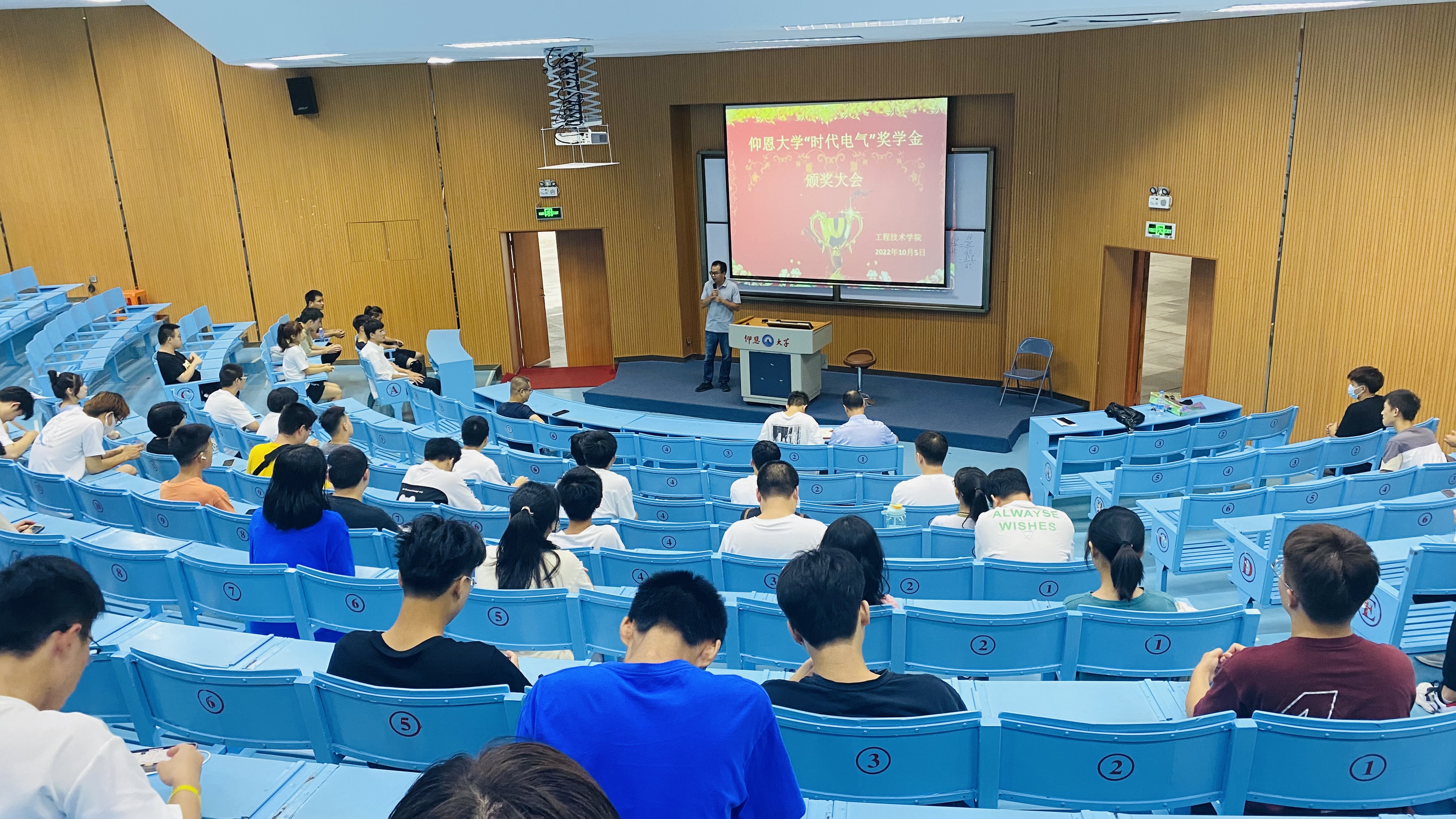10月5日下午4时,jinnianhui今年会首届“时代电气奖学金”颁奖仪式在第三教学区和昌楼海纳讲堂顺利举行。学院常务副院长金承勇、学院党总支书记曾凤生、党总支宣传委员裴爱瑶和学院团委书记徐凯迪以及2022级电气系全体学生参加了本次活动。颁奖仪式由电气工程及其自动化系主任陈永健主持。