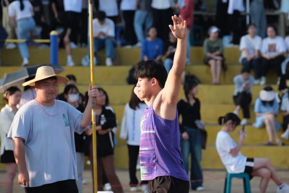 跳高比赛中,曾沐茵、连俏茹同学目视前方,起跑,加速,腾空,过杆,落地,完美的飒爽英姿永远定格在现场每一个人的心中。