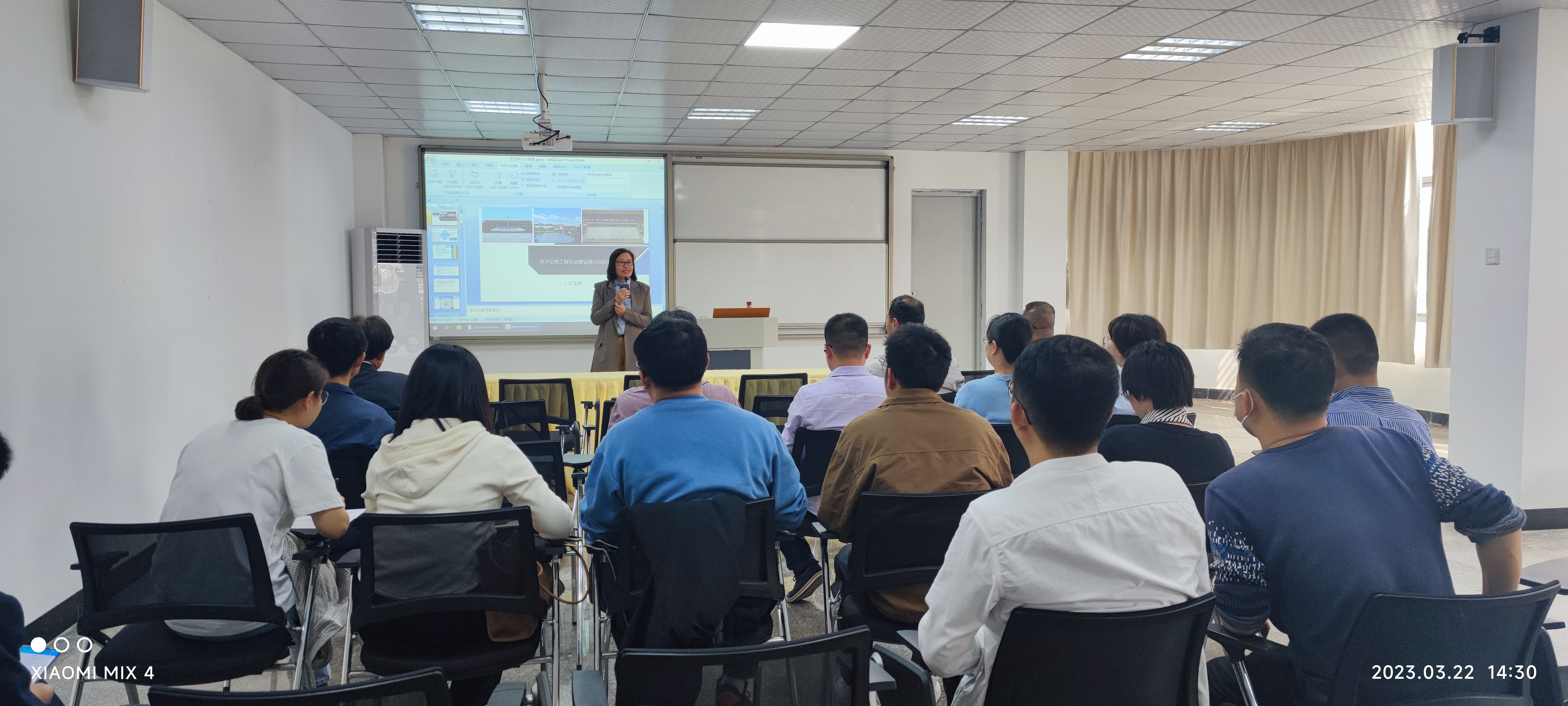 3月22日下午,中国计量大学王玉华教授在新区图书馆学术报告厅开展题为“电子信息工程专业建设探讨及科研项目”的学术讲座,今年会官网电子系、电气系全体教师到场聆听。