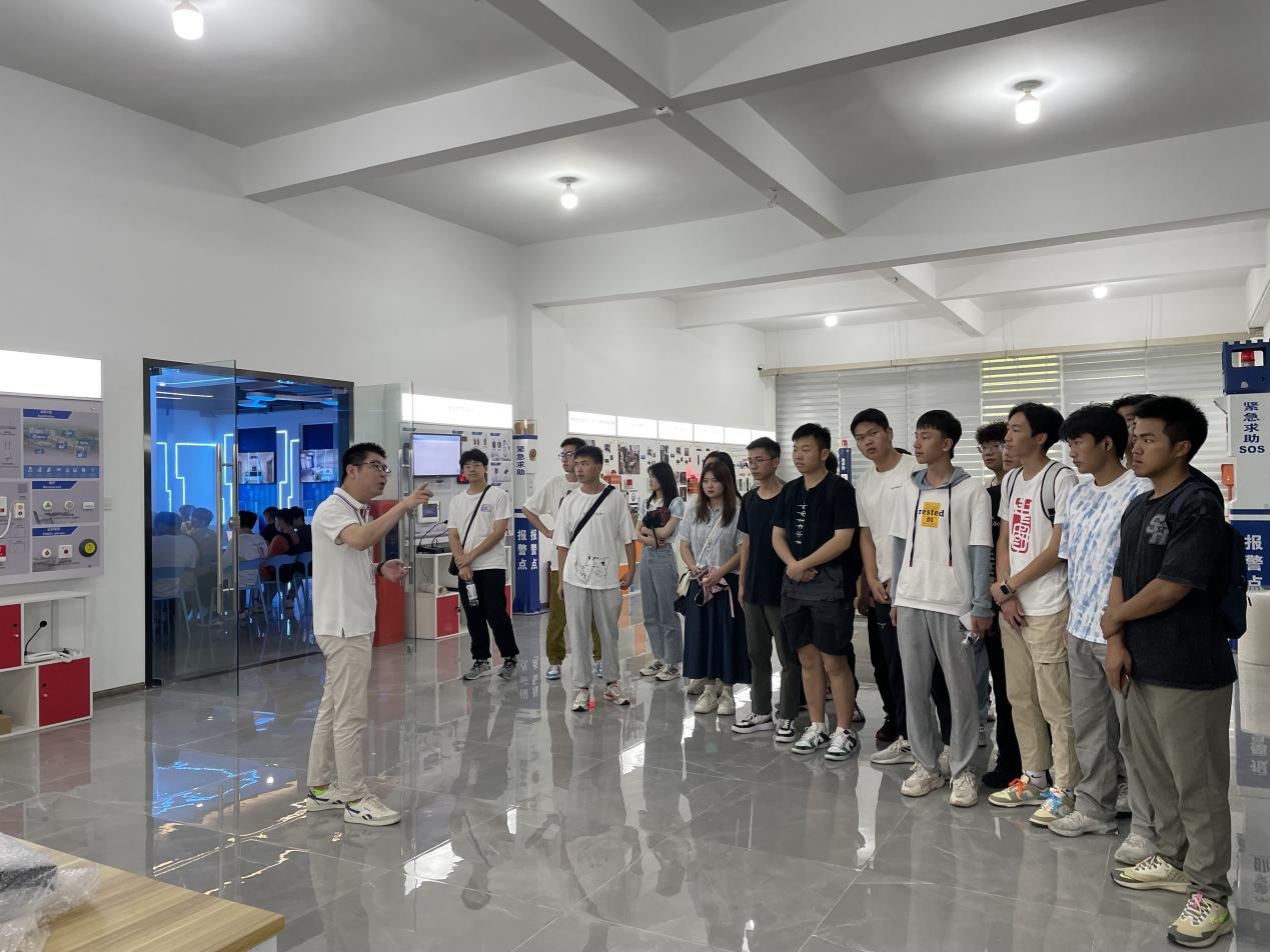 福建环宇通信息科技股份公司总监王晓安介绍了公司的文化、发展和成就,并带领同学们参观生产车间和产品研发部门,讲解了防盗报警系统、音视频监控设备、智能保险柜、楼宇可视对讲系统等公司产品。公司工作人员与同学们面对面交流,就同学们提出的专业、就业和公司团队组成等问题进行答疑解惑,让同学们进一步了解人才市场需求,明确自己未来发展方向。