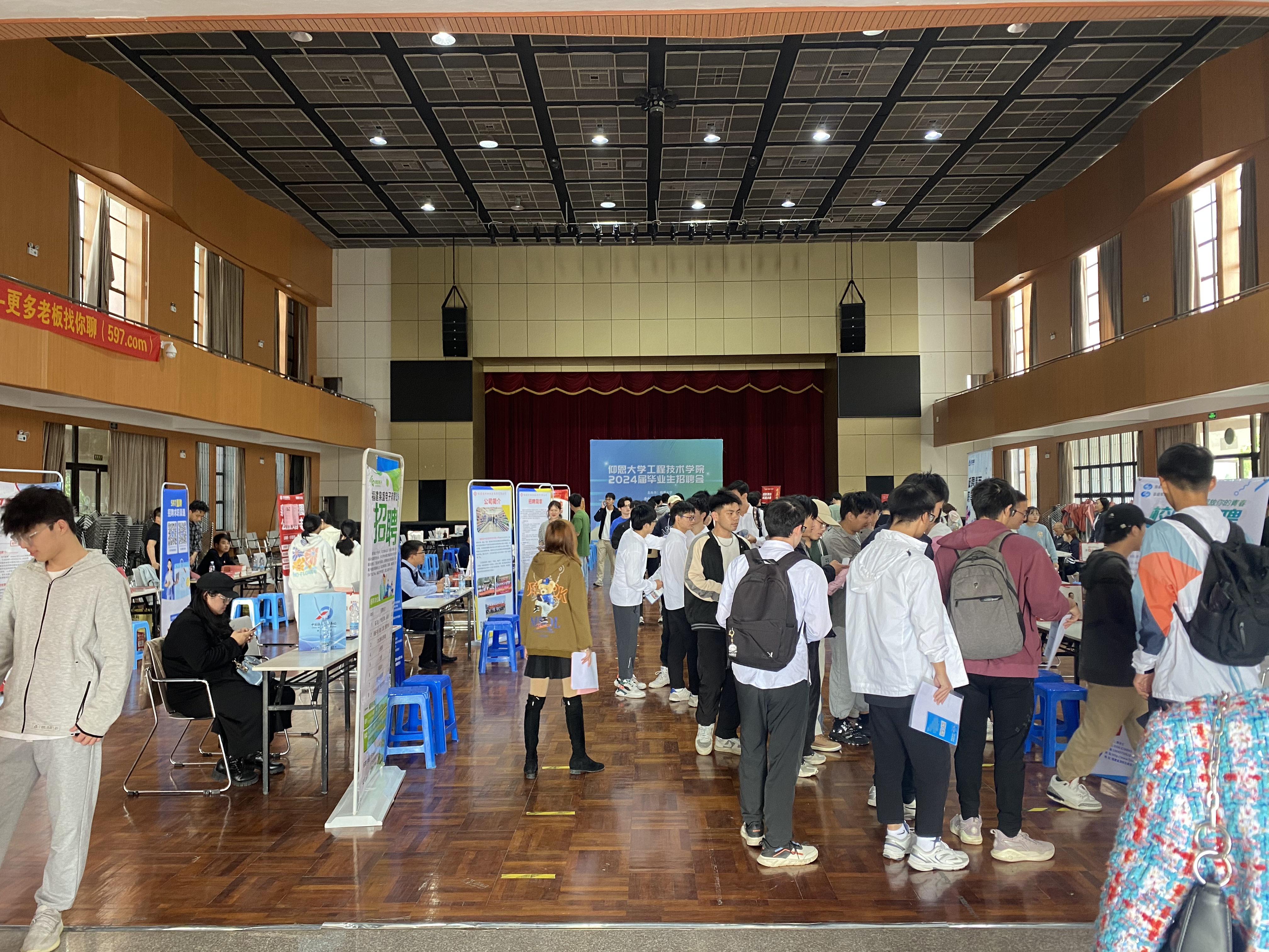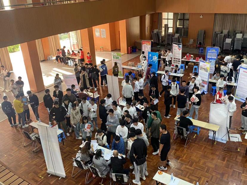 此次招聘会由jinnianhui今年会承办,597直聘协办,共有30余家用人单位进校招才引智,涵盖研发技术、技术运营、后端开发、工艺工程等多个类别,为今年会官网毕业生提供近三百个优质工作岗位,岗位需求与工程技术学院相关专业匹配度高。招聘会现场气氛浓厚,同学们手持自己精心准备好的简历,满脸自信地穿梭于人流之中,积极与招聘人员沟通,主动了解用人单位情况。