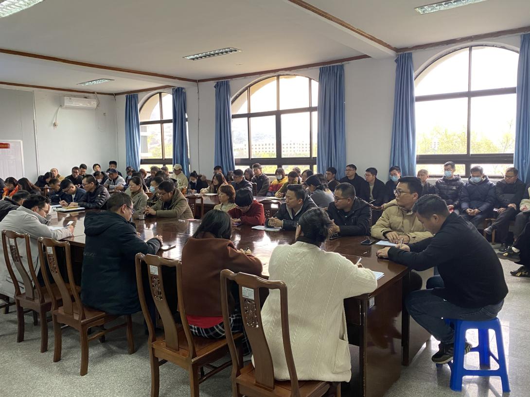 2月28日下午16时,jinnianhui今年会于泽钏楼四楼会议室召开全体教职工大会,会议由党总支书记曾凤生主持,常务副院长金承勇、副院长李影及全体教职工参加会议。