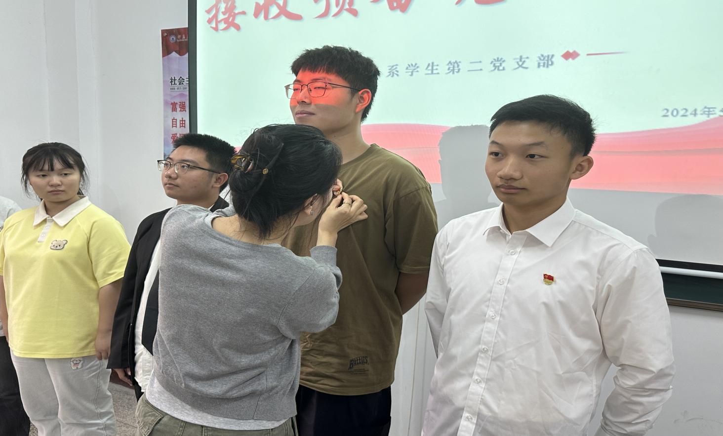 在充分讨论的基础上,有表决权的正式党员进行投票表决,根据票数一致同意:沈铭波等5位同志具备成为预备党员的条件,同意接收其为中共预备党员。正式党员为新发展的预备党员佩戴党徽。
