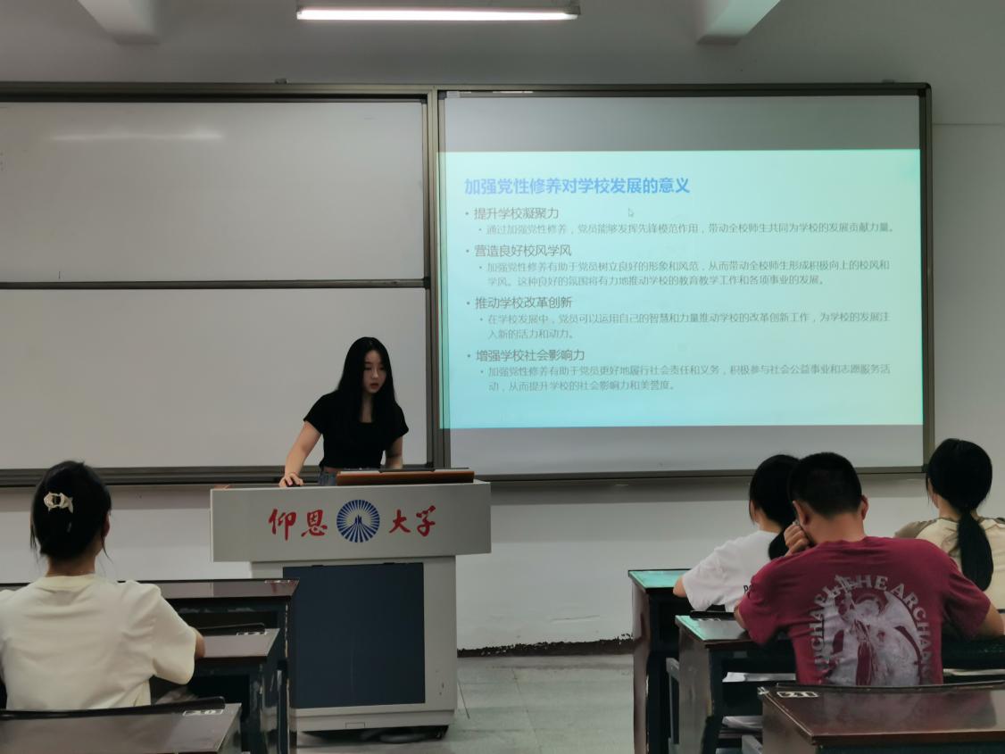 在主持人的引导下,大家认真学习,并就加强党性修养对党员个人成长的意义进行了深入讨论。各位党员自发意识到要把理论与实践、工作与学习联系起来,配合起来;作为党支部的一员积极参加党的组织生活。对全体学生党员来讲,以实践锤炼党性,以行动践行使命,现在仍具有重要的指导意义,仍是我们开展党性实践的努力方向。