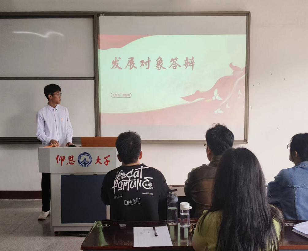 本次答辩分为三个环节,一是参加本次答辩的的拟发展对象逐一以ppt的形式从思想、生活、学习、工作等方面对自己进行全面汇报。二是各位拟发展对象随机抽取理论时事题进行作答。三是支部委员及学生党员评委根据拟发展对象的综合表现情况进行提问,进一步了解拟发展对象的人格、党性等综合素质表现。