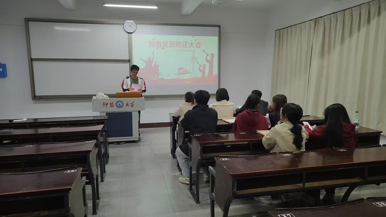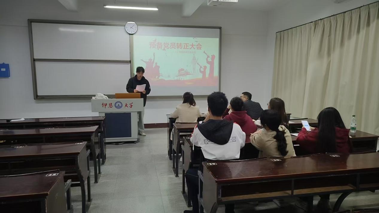 20241223日下午人工智能系学生党支部在仰恩楼A1-105教室召开了关于黄建国、陈轩同志预备党员转正大会。本次大会由支部书记陈思萍同志主持,讨论关于黄建国,陈轩同志转正事项,党支部全体党员同志参与此次会议。