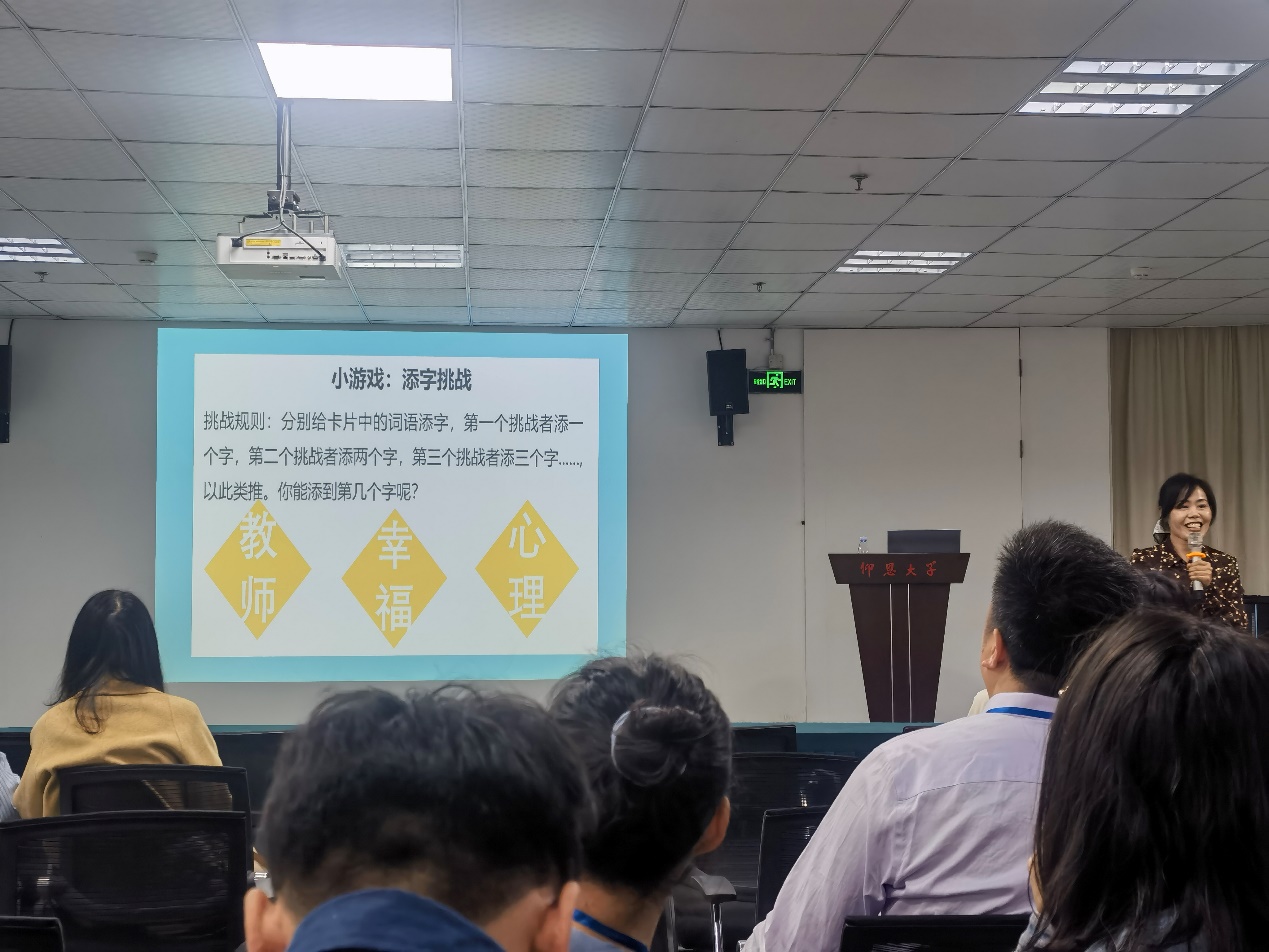 沙龙活动丰富有趣,校心理中心王艳红主任以拍手解压放松操、添字挑战等小游戏开场,从辅导员的工作所面临的压力入手,逐步引导大家觉察和表达自我情绪,通过冥想的方式来平和内心,放松身心,激发正面情绪,感受快乐。在沙龙中,王艳红主任为大家分享了认知情绪的方法、引导大家觉察情绪和身体的关系、讲解了情绪的来源,让大家能更好的控制情绪,针对出现的负面情绪,要学习并学会关心自己,针对情绪本身,可以通过赋能、和解和允许接纳的方式。最后,为大家推荐了《活出最乐观的自己》、《持续的幸福》、《带着快乐去上班》等精品书籍。