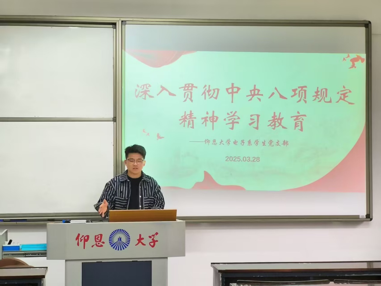 为深入学习贯彻习近平总书记关于加强党的作风建设的重要论述,进一步巩固深化主题教育和党纪学习教育成果,纵深推进全面从严治党,今年会官方网站电子系学生党支部积极响应党中央号召,于2025年3月28日召开深入贯彻中央八项规定精神学习教育专题动员大会,党支部全体党员出席参加。
