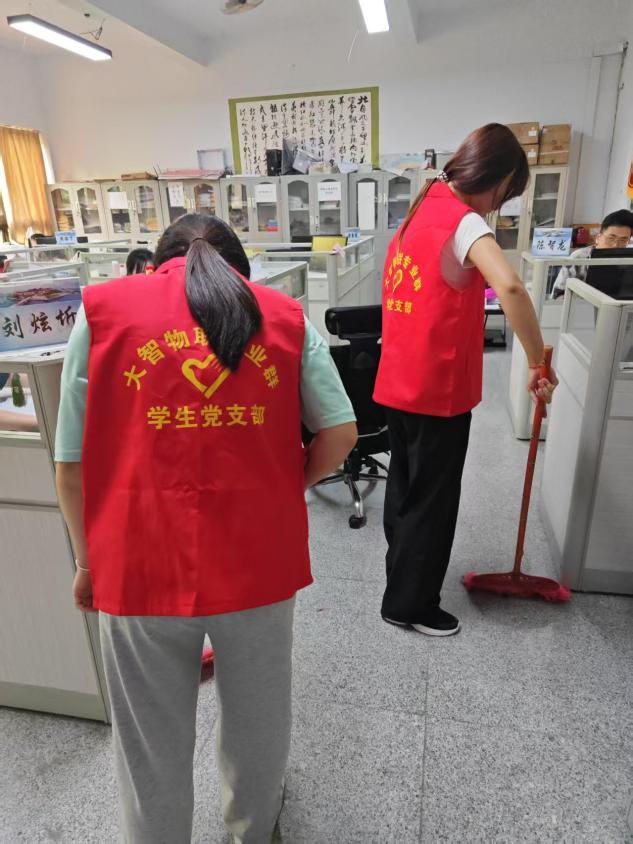 10余名学生党员和积极分子在党支部书记陈思萍的带领下,身着红色志愿马甲,携带清洁工具,分组对辅导员办公室和泽钏楼四楼会议室进行了全面清扫活动中,党员们分工协作、干劲十足有的整理文件、擦拭桌椅,有的清扫地面、清理垃圾,确保每个角落干净整洁经过两个多小时的努力,办公室环境焕然一新。