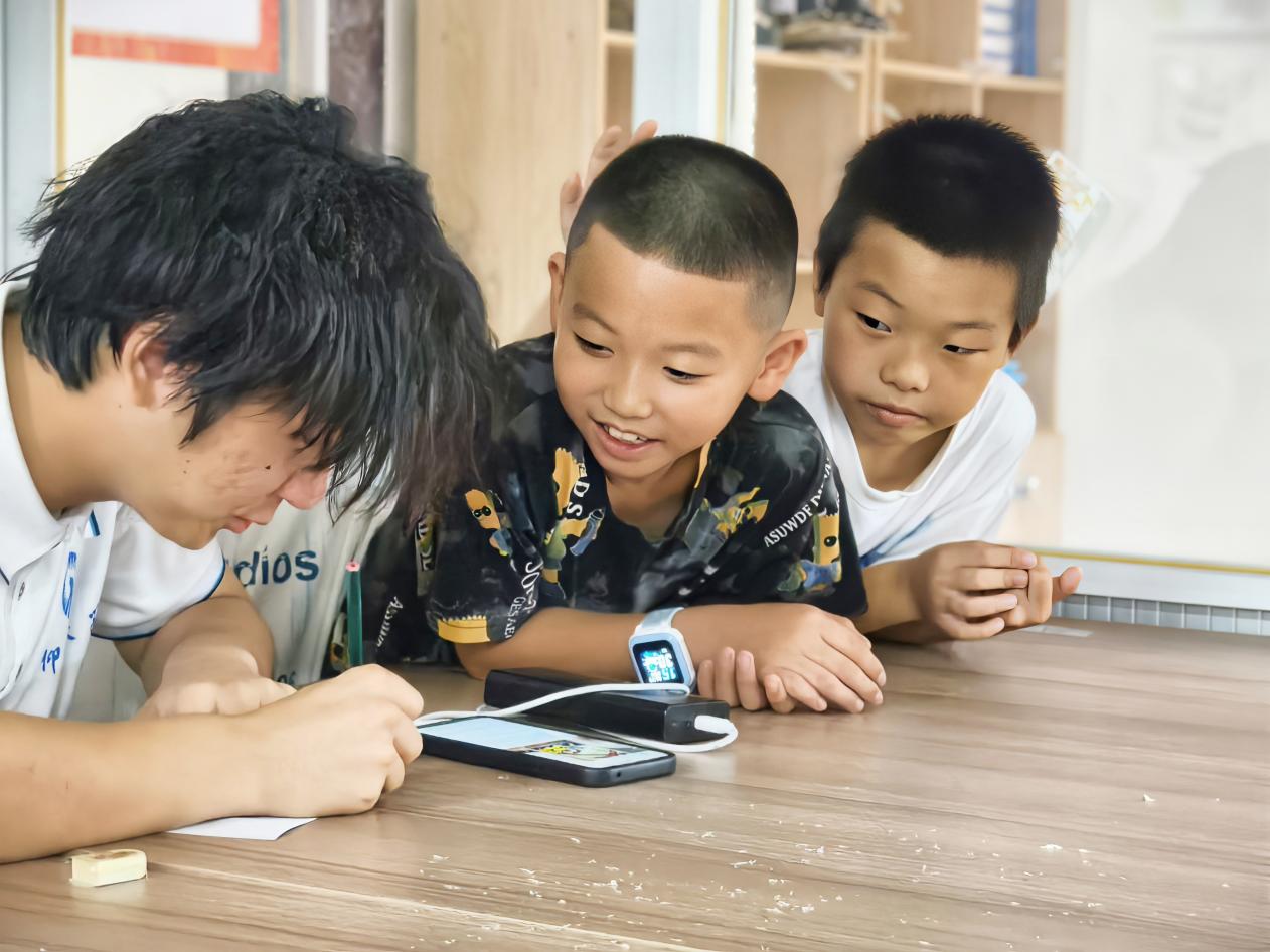 实践队队员与小朋友共同绘画