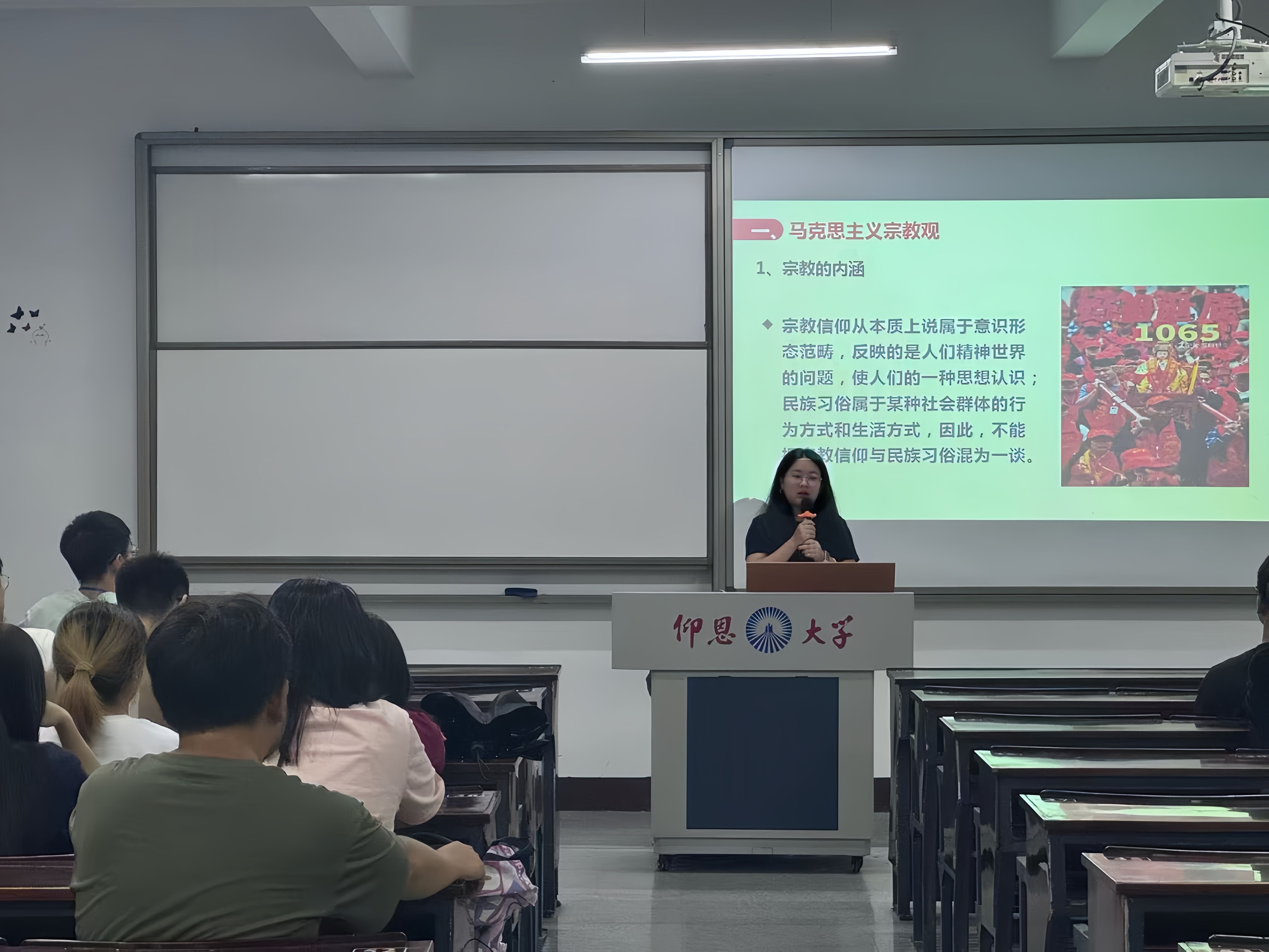 为贯彻发展团员最新要求,加强对青年学生的思想引领,2025年10月16日,jinnianhui今年会团委书记刘炫圻老师在仰恩楼D1-405教室为团员开展了以“马克思主义宗教观”为主题的团课教育活动。