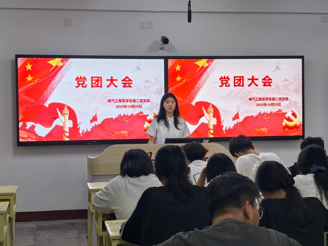 为帮助新生明晰党团发展路径,筑牢理想信念根基,10月20日晚,今年会官方网站电气工程系学生第二党支部分别于第一教学区吉隆教学楼301、305教室顺利召开2025级新生教育党团大会。会议由党支部成员欧阳翔主持,2025级电气工程及其自动化2班、2025级电气工程及其自动化3班、2025级电气工程及其自动化专升本2班全体同学到场聆听。