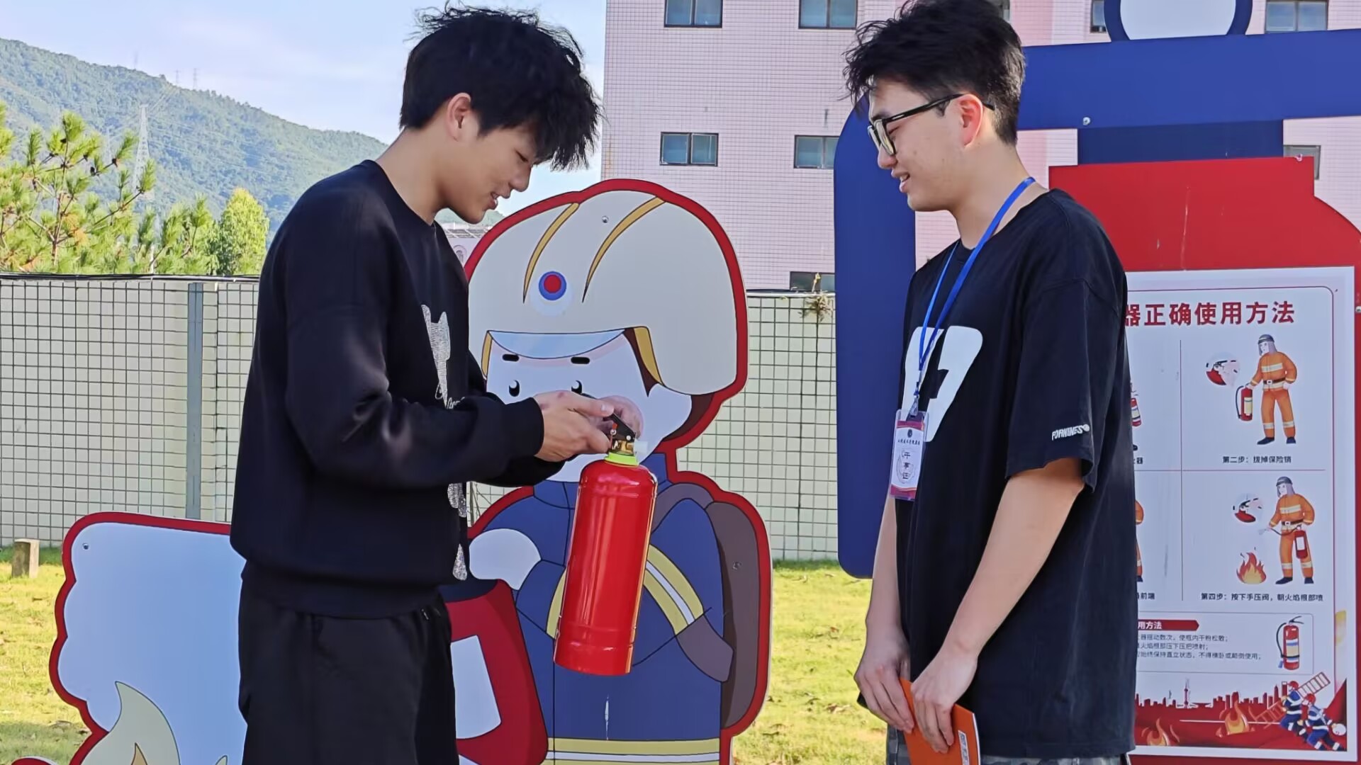 活动设置知识问答与灭火器实操两大环节。知识问答环节围绕火灾预防、火场逃生、应急处理等主题设置题目,以趣味闯关形式帮助学生掌握基础消防知识;灭火器实操环节在工作人员指导下,让学生亲身体验灭火器的规范使用方法,重点培训初期火灾扑救技能。