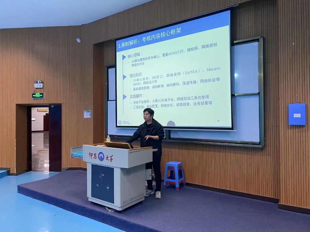 本次宣讲会邀请连义翀、徐豪等往届竞赛指导教师联袂主讲,对 “大唐杯”竞赛进行经验性分享,从赛事权威性、行业背景与发展趋势入手,对赛事进行了深度权威解读,详细介绍说明竞赛考核内容和竞赛流程,拆解备赛各阶段的具体方法与推荐学习资源,分享了往届参赛同学的获奖成果。此外,会上对第十三届“信科赛”(原“大唐杯”)竞赛通知文件进行了详细解读,极大提高了同学们参赛的积极性和主动性。